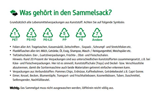 Entsorgen können Sie alle Kunststoffe mit den unten aufgeführten Logos.